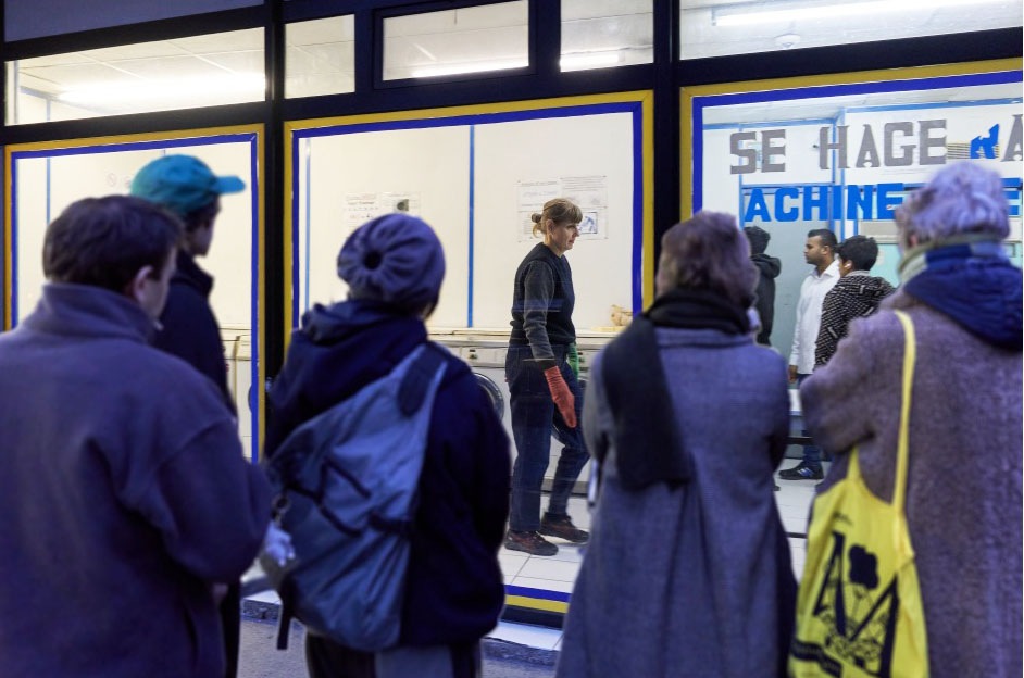 Performance dans une laverie de la rue de Belleville, le ç février 2025, sur une invitation de Jérémy Buldot.